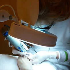 Relax your tired feet with an advanced pedicure with podology. Your feet are first tended by smoothing off dead skin and callous to a touchable baby soft skin. Feet are peacefully soaking in a warm foot bath with pure essential oils from Dr.Hauschka. Nails trimmed, and cuticles are cleaned up. Next amazing foot care foam and creams from Footlogix are applied. . The world's first and only Pediceutical created to bring health back to feet and nails. Finally the lower legs. feet and toes are heavenly soothed with a massage using rich Footlogix moisturizer tailored for healthy legs and feet. . Finished with a lasting polish of your choice, or a natural buff.